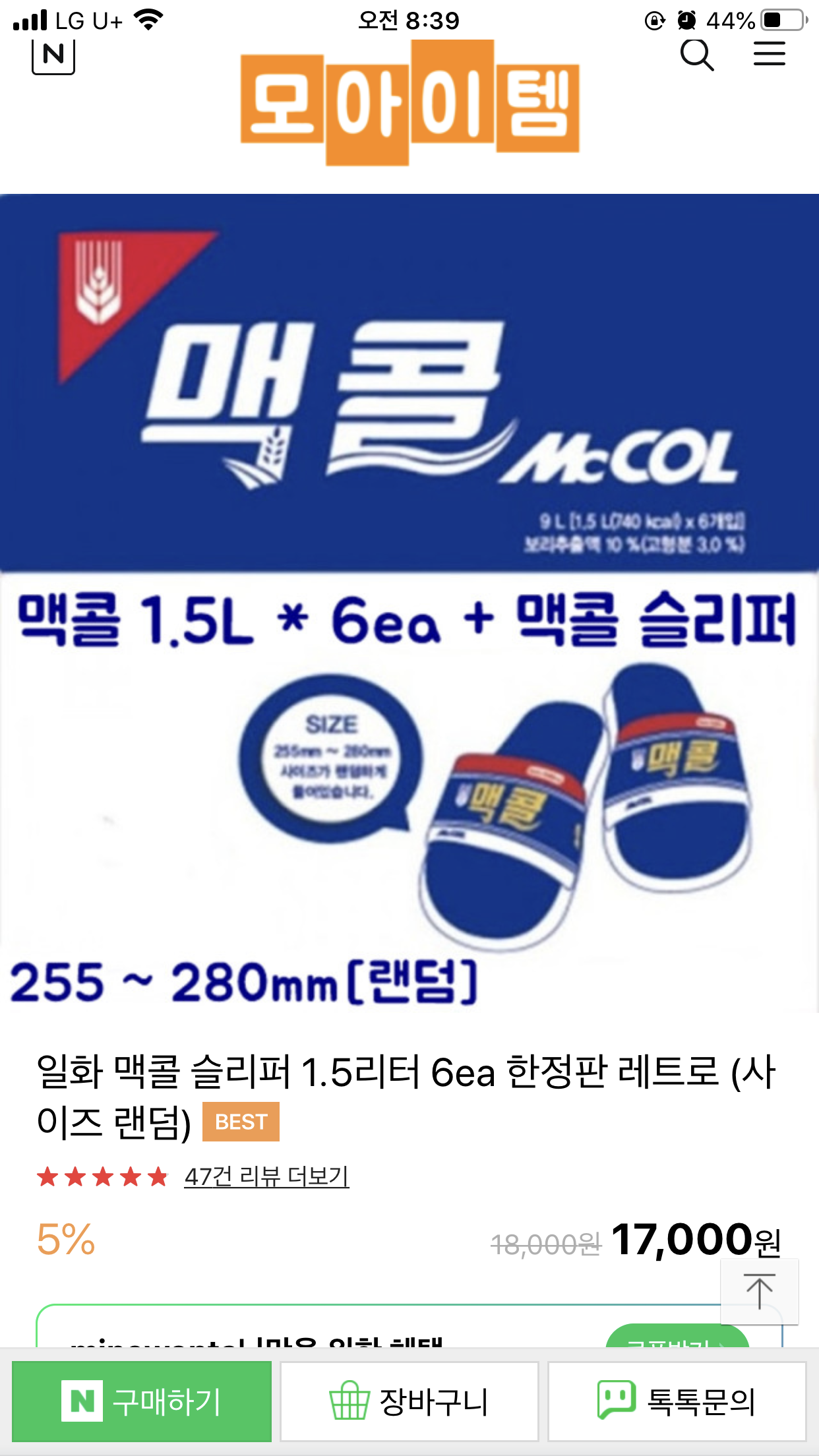 이 제품을 구매하게 된 주원인인 저 맥콜 슬리퍼는 사이즈 랜덤이라는 것은 알았으나....