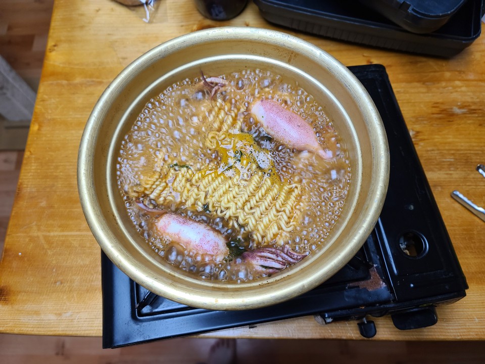 급하게 버너를 가지고 와서 라면을 끓였어요. >_<