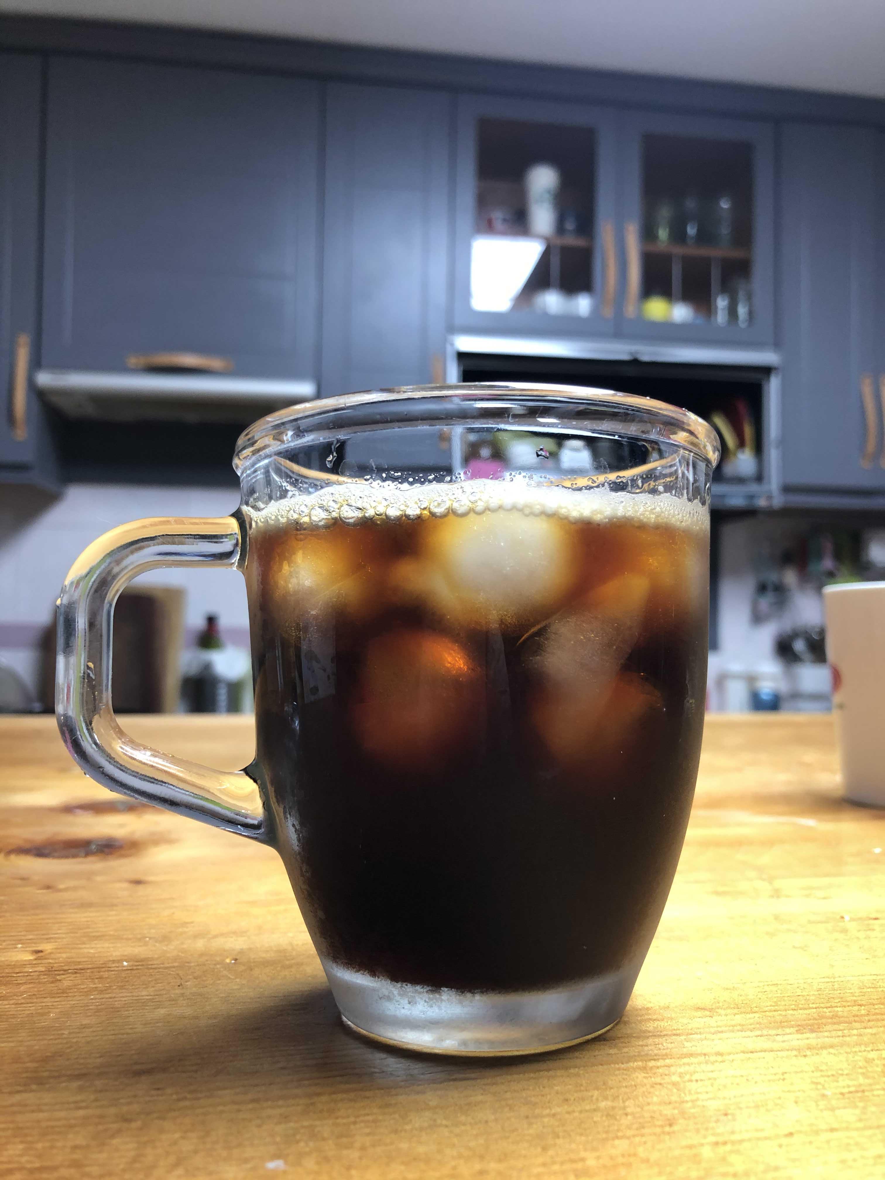 머그잔에 2샷 내려서 아아를 만들어보았아요.