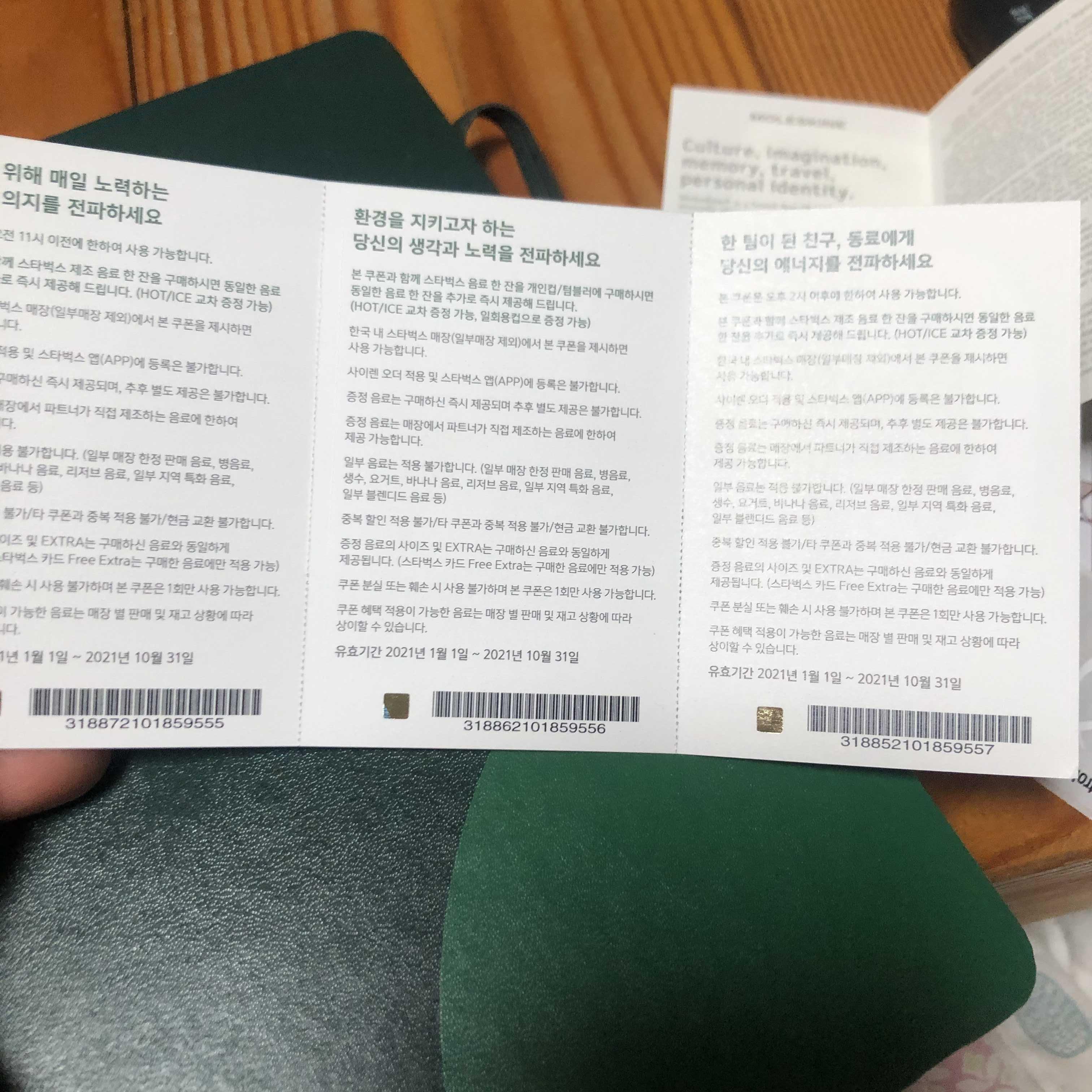 올해 음료쿠폰은 초록색 깔맞춤을 한건지..그냥 뜯지말고 이대로 보관하고픈 마음이 들게 하네요...carry on!!!ㅋㅋㅋ