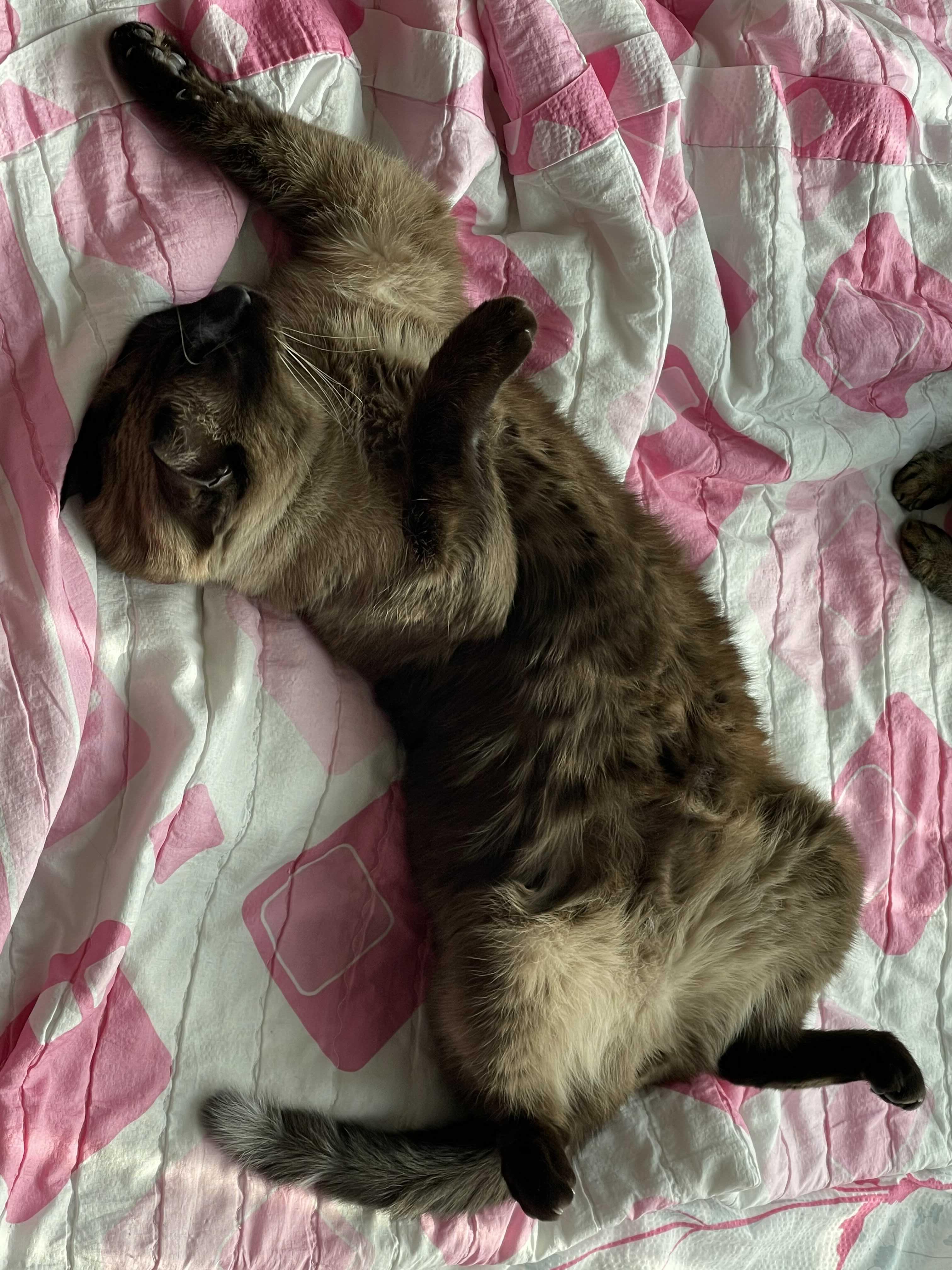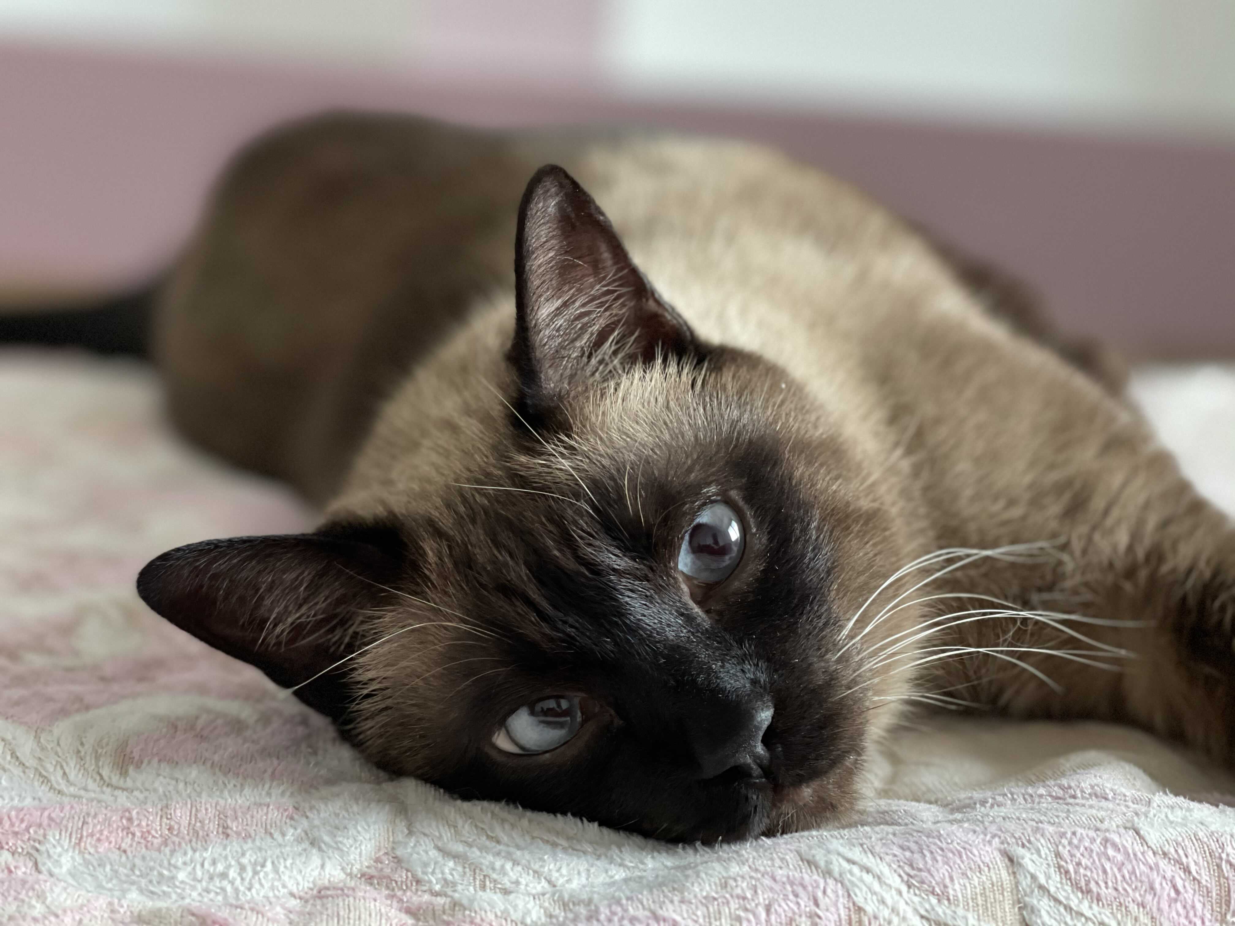 집사가 일어나도 절대 움직이지 않는 샴 고양이 민트..