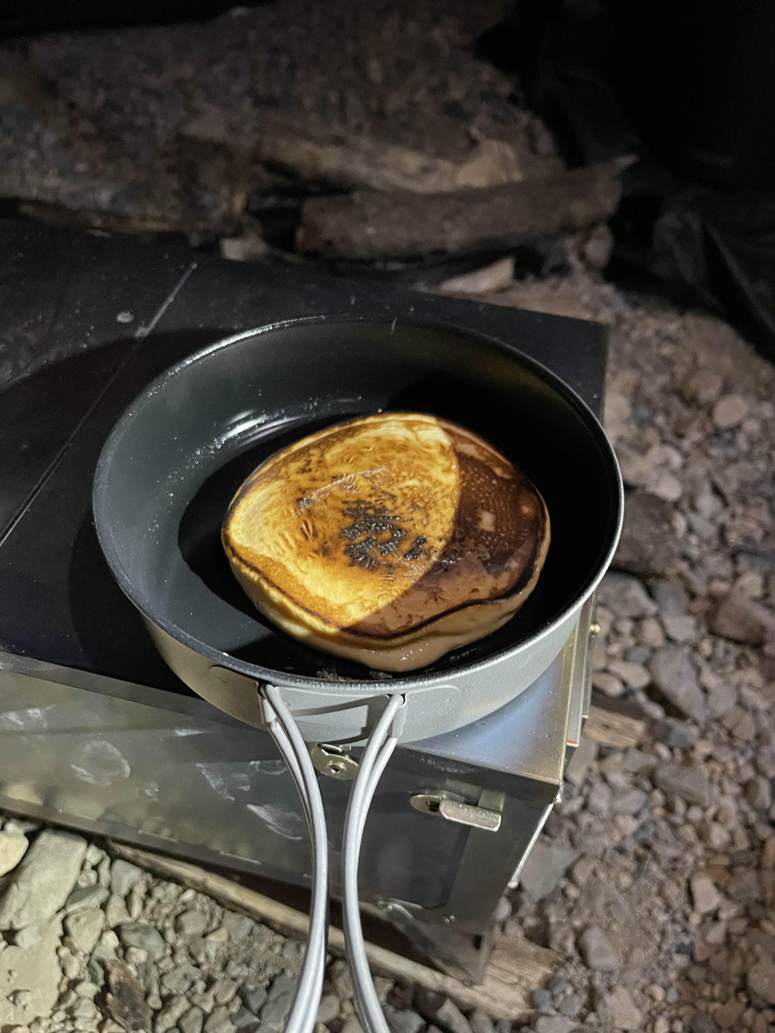 도중에 바닥에 돌맹이 3개를 얹어서 그 위에 팬을 두니