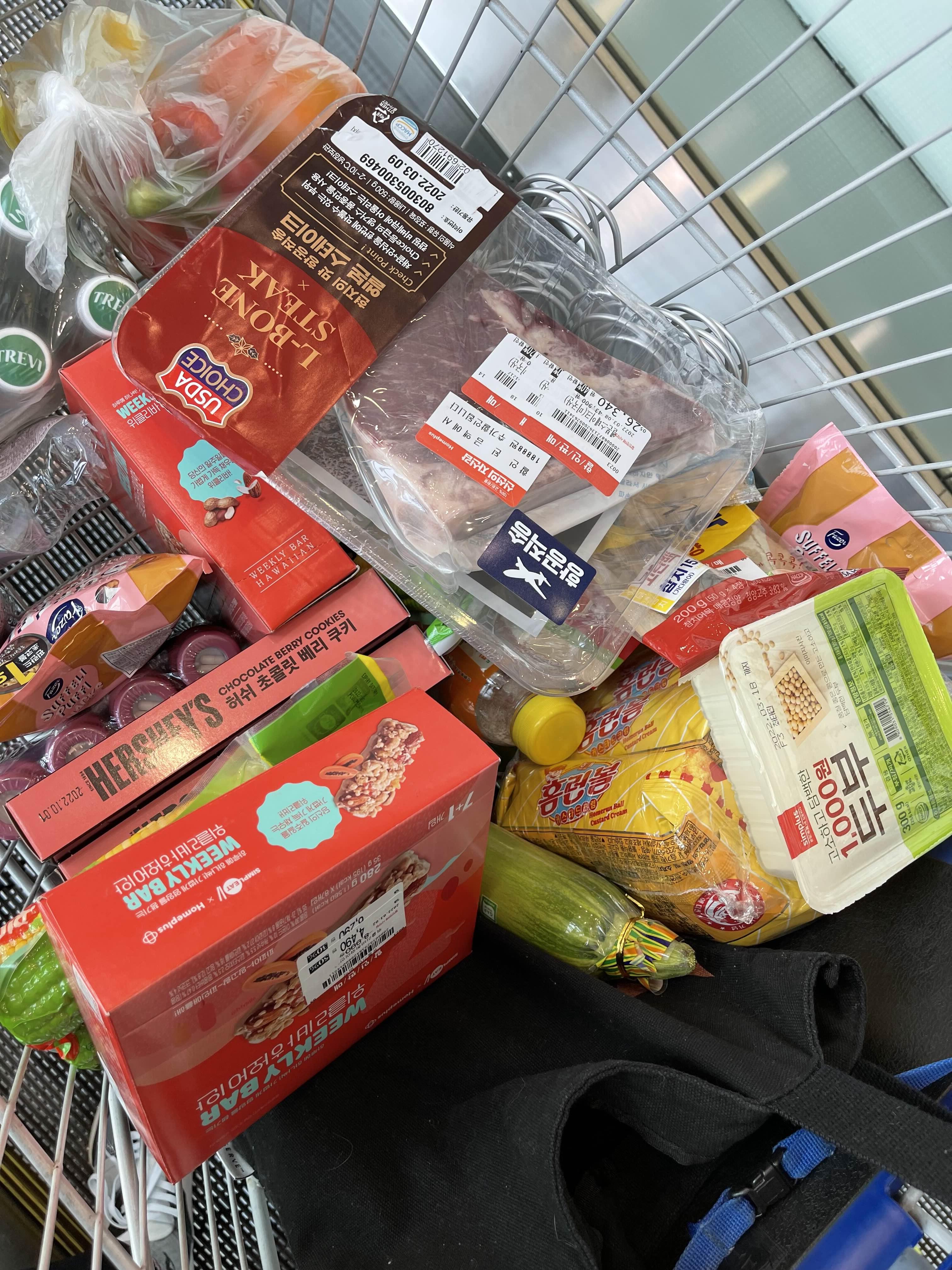 내 생애 첫 캠핑을 위해 마트에서 장을 봤습니다.