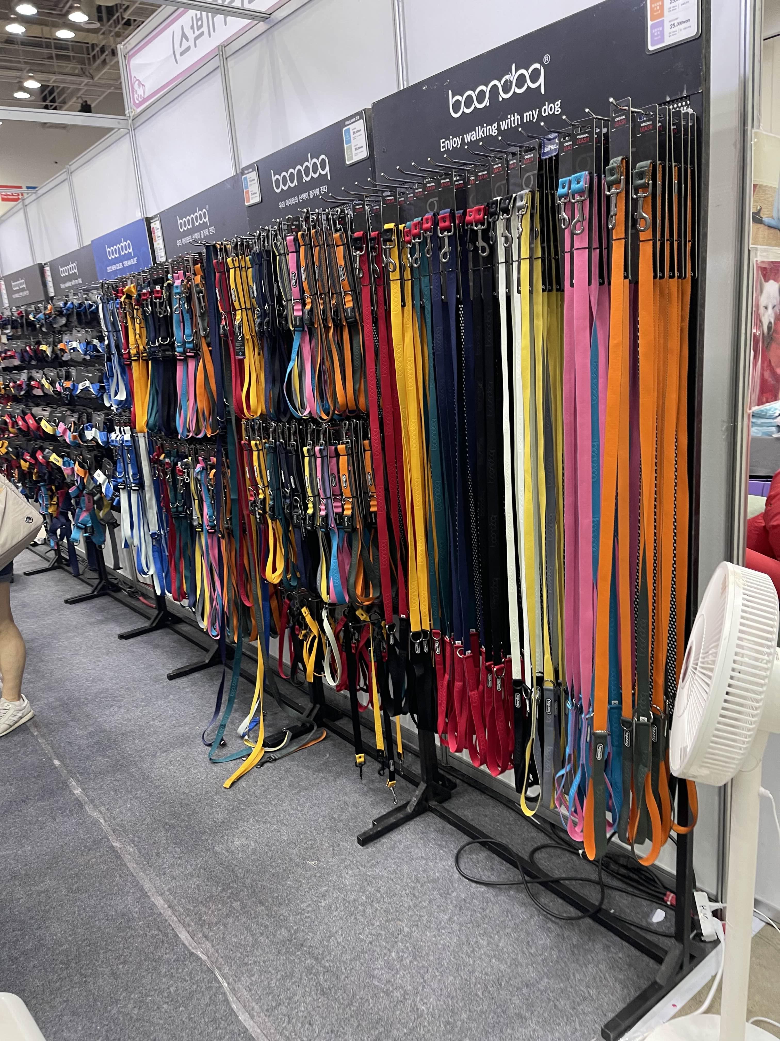 깔별로 진열해둔 목줄이 멀리서도 눈에 띄더라구요.